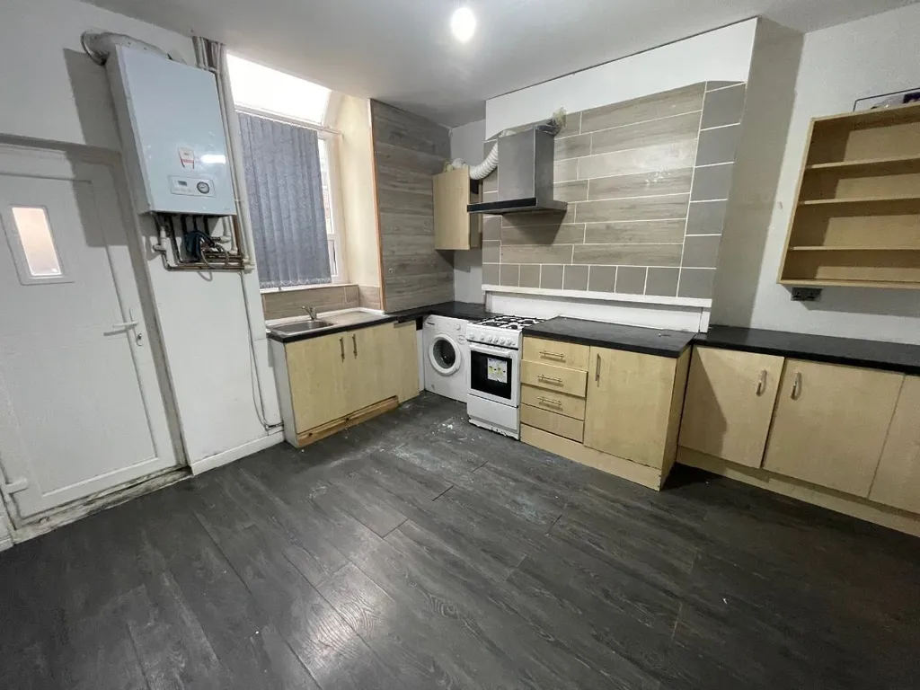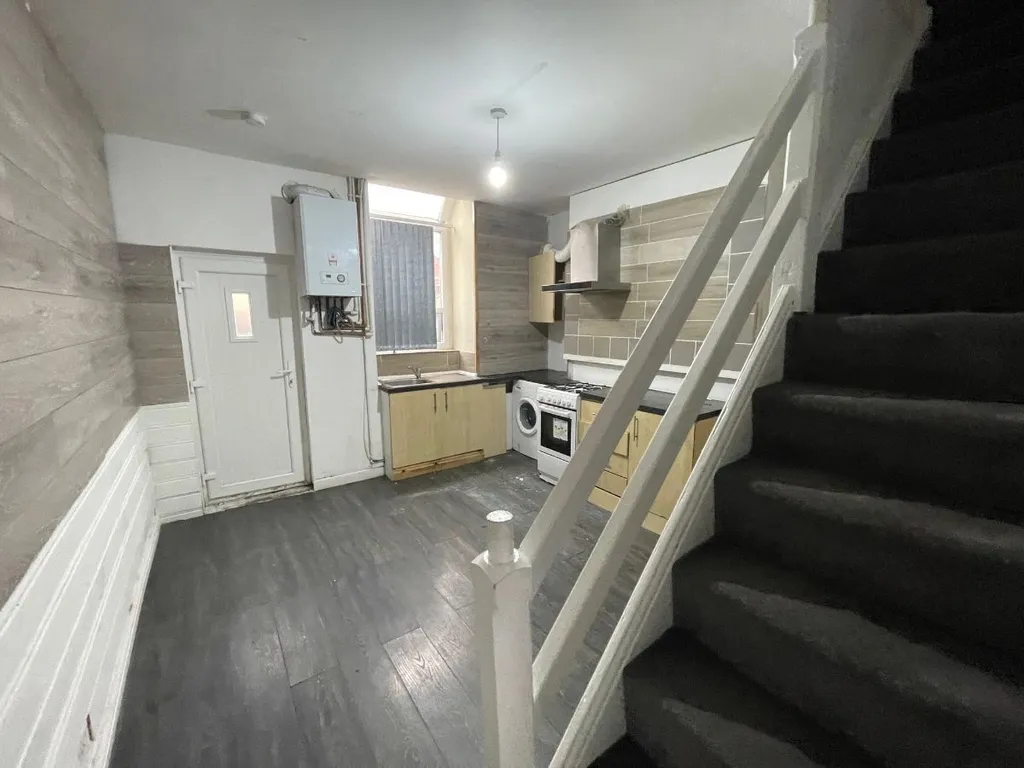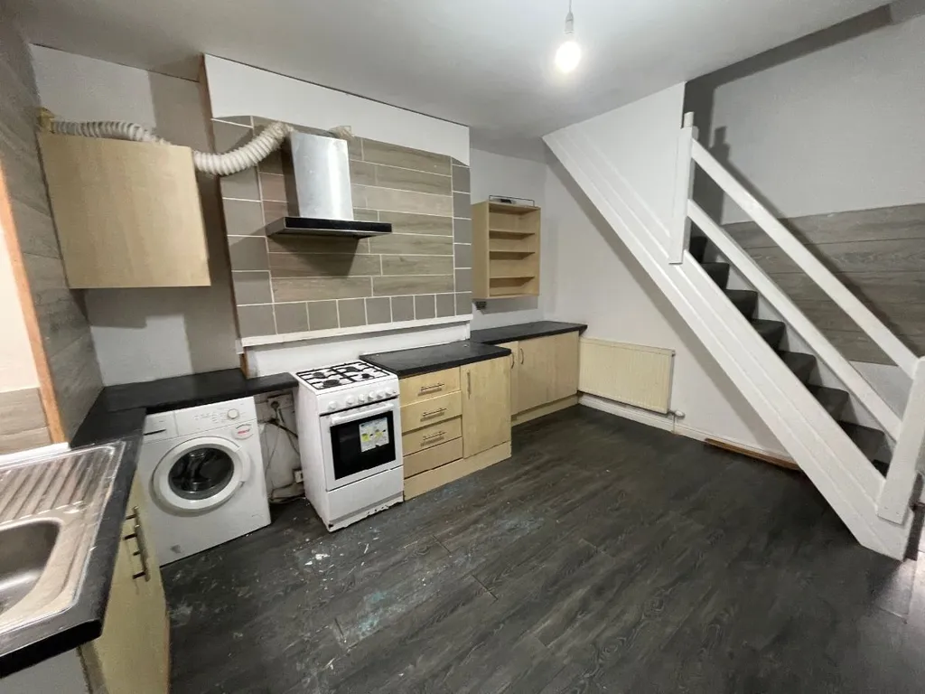 The kitchen is fitted with a range of wall and base units with complementary work surfaces. Gas cooker and washing machine provided. Space for fridge freezer. Radiator. Door leading to rear yard.
